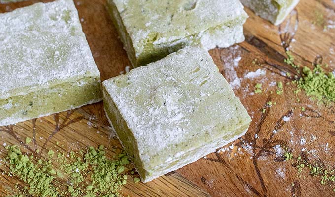 - To cut, sprinkle a cutting board with arrowroot starch and turn the marshmallow out onto it. Cut into squares with a sharp knife and lightly toss in a mixture of arrowroot starch and matcha. Enjoy!