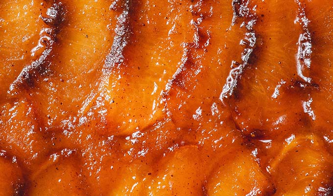 This Ginger-Peach Upside-Down Mochi Cake is chewy and dense with crisp edges, peach purée in the batter and caramelized fresh peaches on top. The caramel is infused with Ginger Zing, adding a warm, spiced depth that makes it a standout summer dessert.