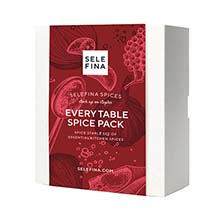 Stock Up on Staples: EVERY TABLE SPICE PACK This collection includes a set of kitchen staples plus sample packets of herbs and spices that show up in everyday cooking. With this pack, you’ll have the basics covered for seasoning, blending, and finishing a wide variety of dishes—from quick weeknight meals to larger gatherings.